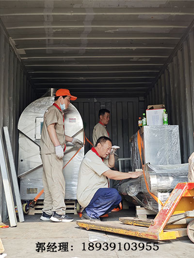 許昌職工2米電磁炒貨流水線裝車發(fā)往海外炒制膨化大米