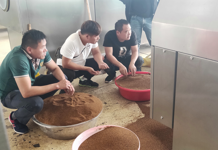 安徽亳州客戶(hù)來(lái)廠(chǎng)試機(jī)炒制中藥材菟絲子!