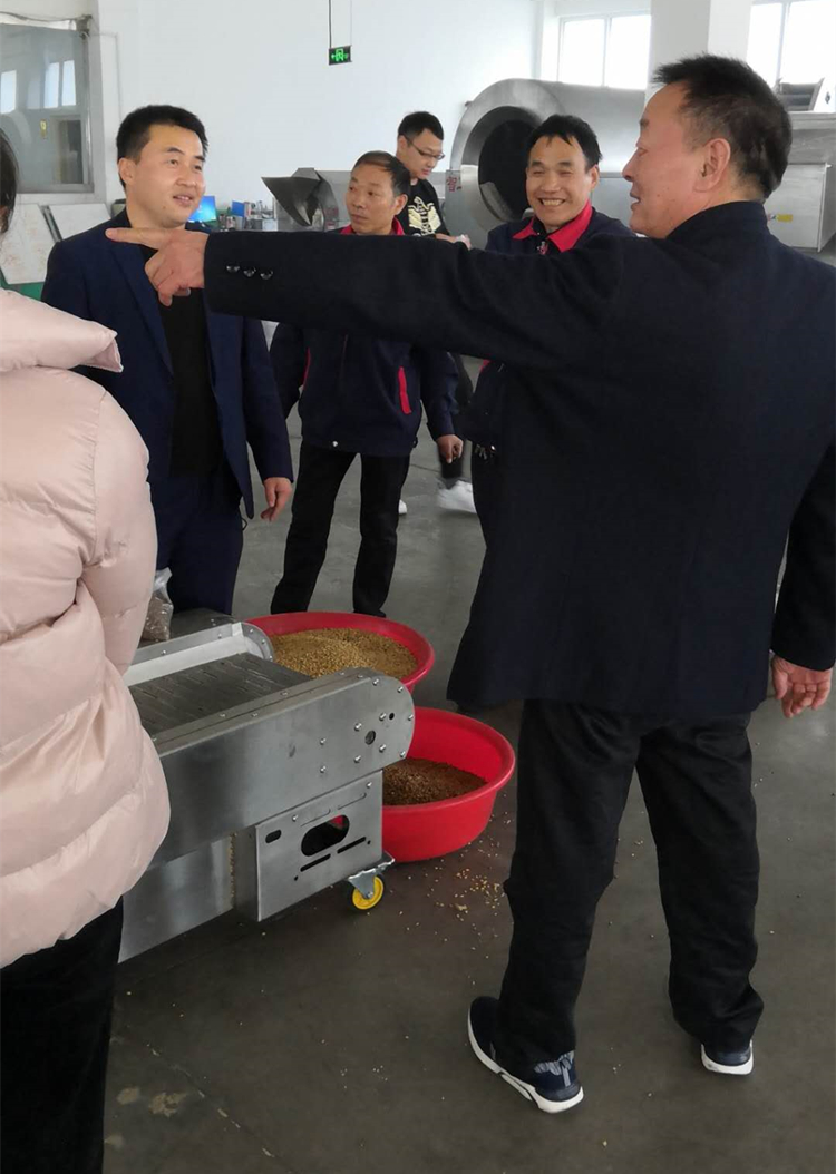 甘肅客戶一大早來到公司試機許昌智工電磁流水線設(shè)備炒制大麥芽,炒制成熟之后繼續(xù)深加工制作減肥茶,經(jīng)過 幾次炒制試驗客戶非常滿意炒制效果,對我們的許昌智工的電磁炒貨機也是贊不絕口同時發(fā)自內(nèi)心的豎起來大拇指!