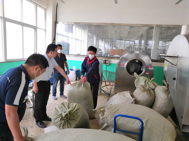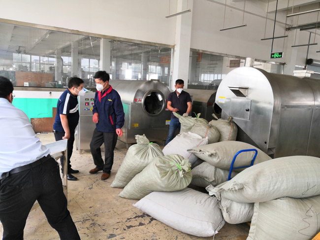 5月13日,鄭州客戶馬總一行三人自帶辣椒、花椒、茴香、桂皮等復合型大料來許昌智工試機電磁炒貨機炒制!炒制過程主要是起到去除水分的作用,方便下一步客戶需要的磨粉工藝!經過我們工作人員的共同參與歷時三個小時的炒制,客戶帶過來的900斤調味料全部炒制完成,客戶對炒制效果非常的滿意,并且對我們的設備也是給予了極大的肯定!