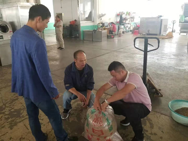 9月23日鄭州客戶廖總一行兩人開車來廠考察試機炒制香酥豌豆!