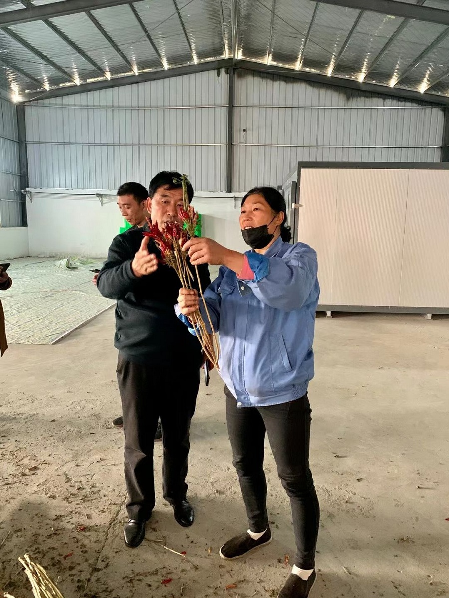 11?月10號(hào),三門(mén)峽陜州區(qū)千年 仰韶古村 落窯頭村 黨支部書(shū)記曹支書(shū) 來(lái)到我縣井外村 ?辣椒烘干合作社考察許昌智工ZG-40型框式辣椒烘干房,經(jīng)過(guò)詳細(xì)了解,對(duì)我們?cè)O(shè)備烘干出來(lái)的產(chǎn)品非常感應(yīng)趣,感謝遠(yuǎn)到而來(lái)的朋友
