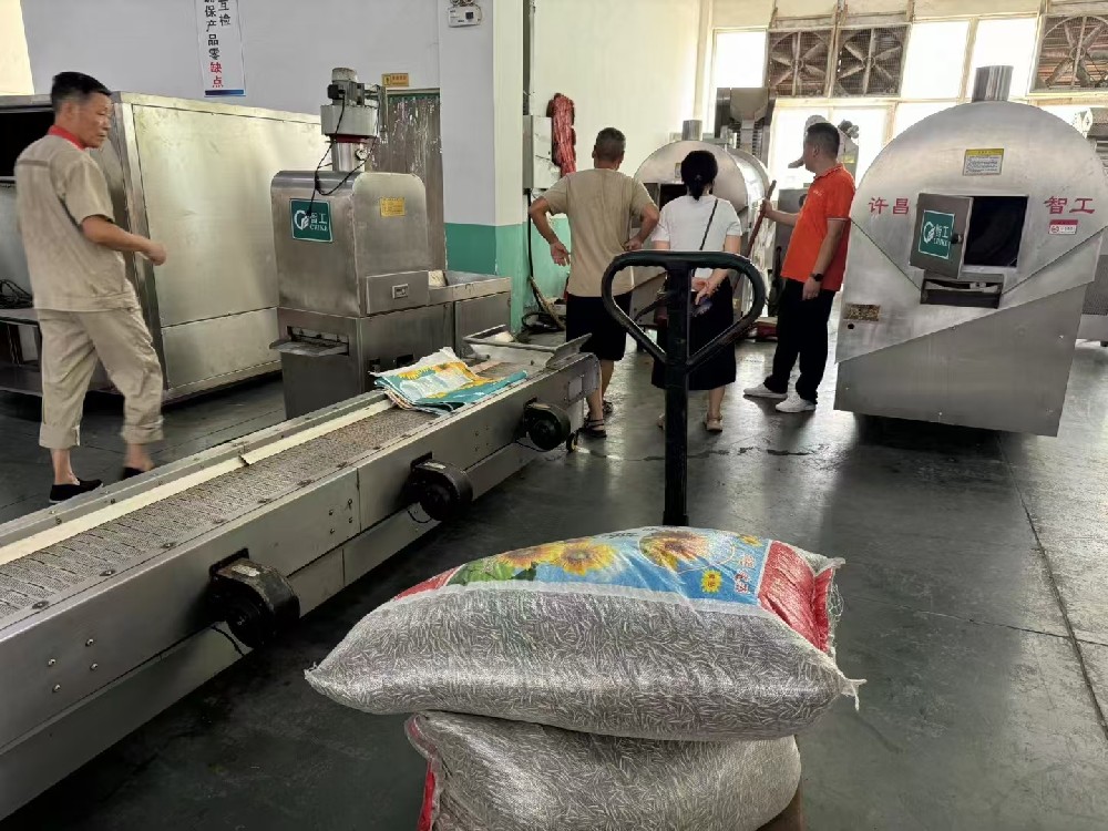 8月26日河南客戶來廠試機自動炒鍋炒制瓜子